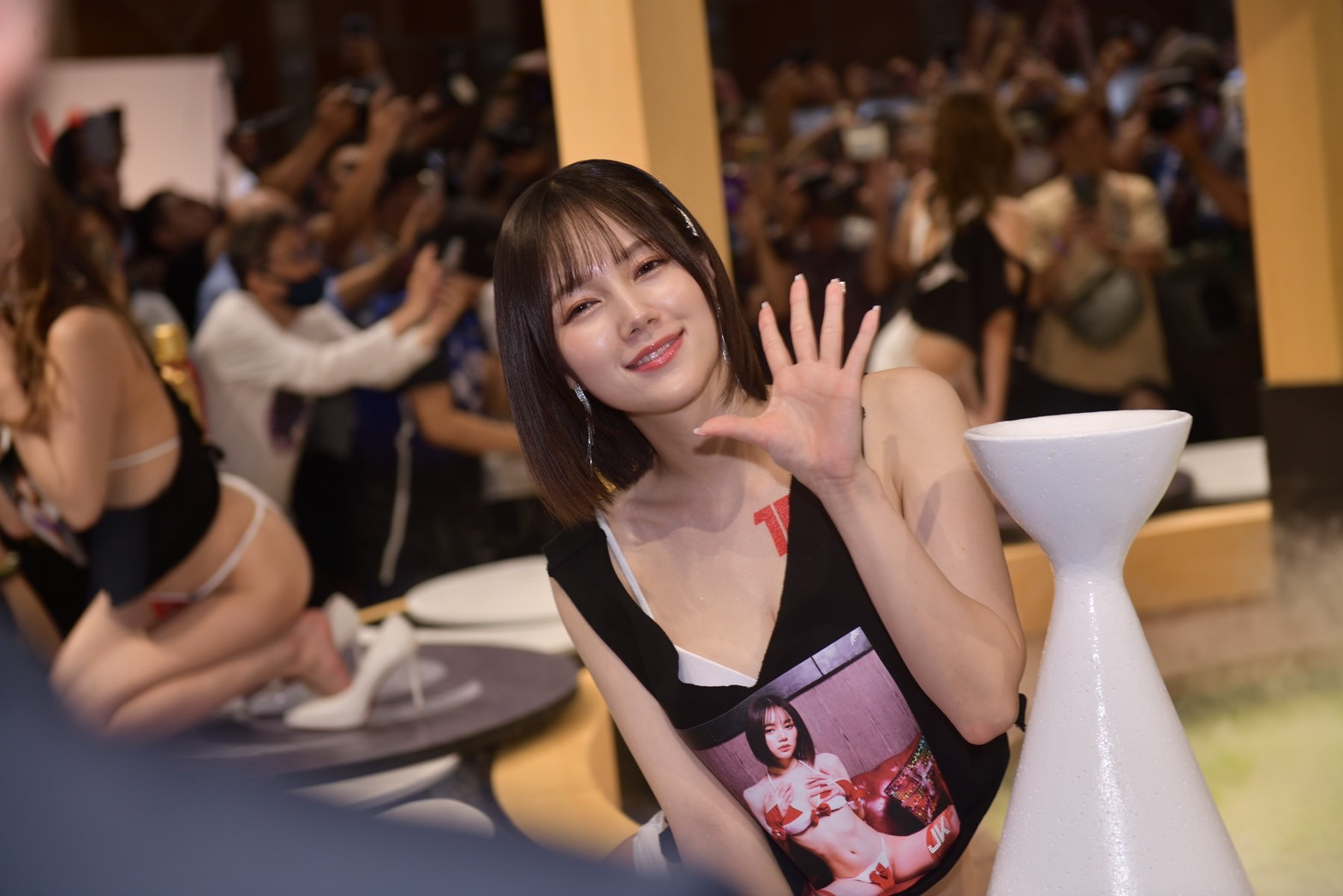 看到八挂うみ(八挂海)在台上落泪,经纪人除了在第一时间和我湿米麻线(すいません)说抱歉外,也和我说因为蚊香社(Prestige)很保护她们,所以这种台上前辈多台下粉丝更是多的情况是八挂前所未见的过激场面,她吓到了。