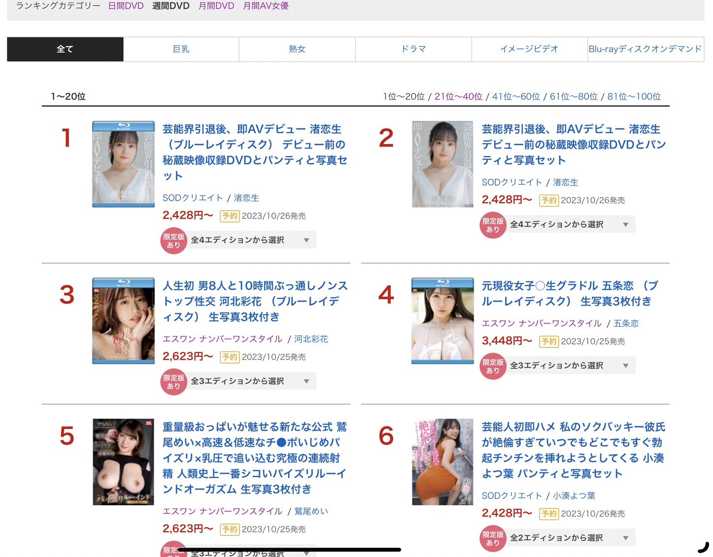 没错,SOD Star花大钱签来的艺能人「渚恋生(渚恋生)」拿下了冠军ー这是必然的,渚恋生卖的不只是她的外型她20年的芭蕾舞资历以及AV解禁的初Sex还有她背后的宝冢歌剧団招牌,在身分被破解后我觉得没拿下销售冠军那就是失败了〜