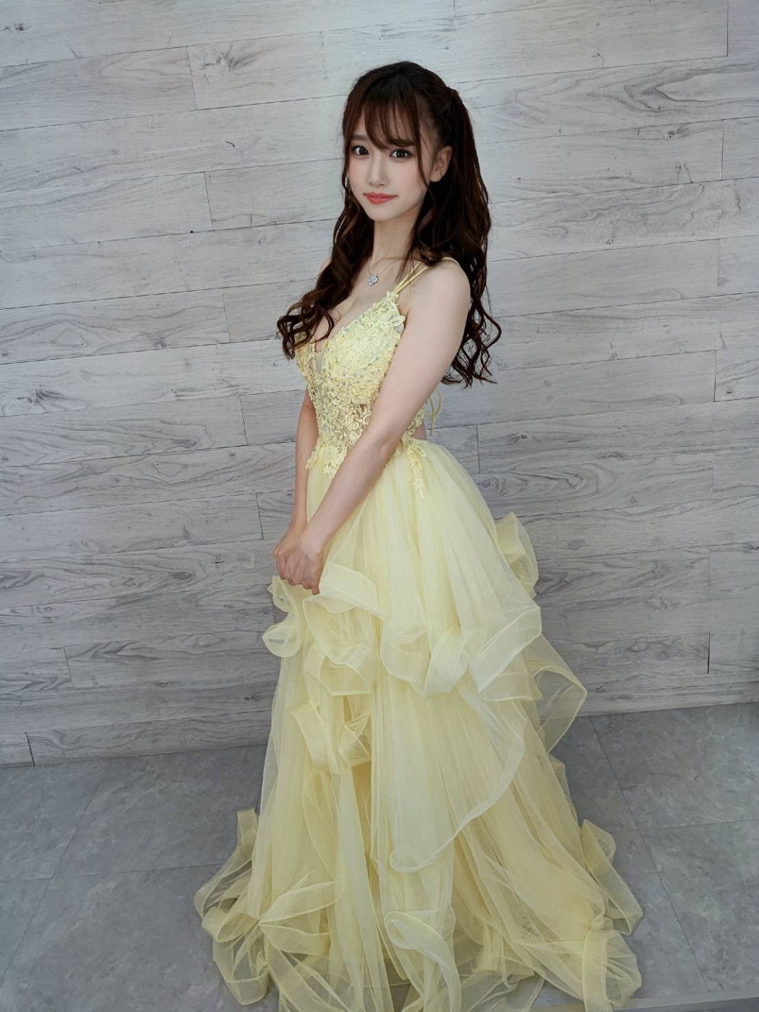 能盛装打扮和影迷说再见是幸福的,安达夕莉以长发造型现身、身上的黄色小礼服把她的身材修饰得凹凸有致,完全可以理解为什么一身好条件的她会是顶级片商S1的专属女优;最重要的是她昨天举办的活动是「即売会」、也就是没有名额限制只要在时间内到场就可以参加,片商和经纪公司的意思很明显,就是让大家都可以和安达夕莉说再见...