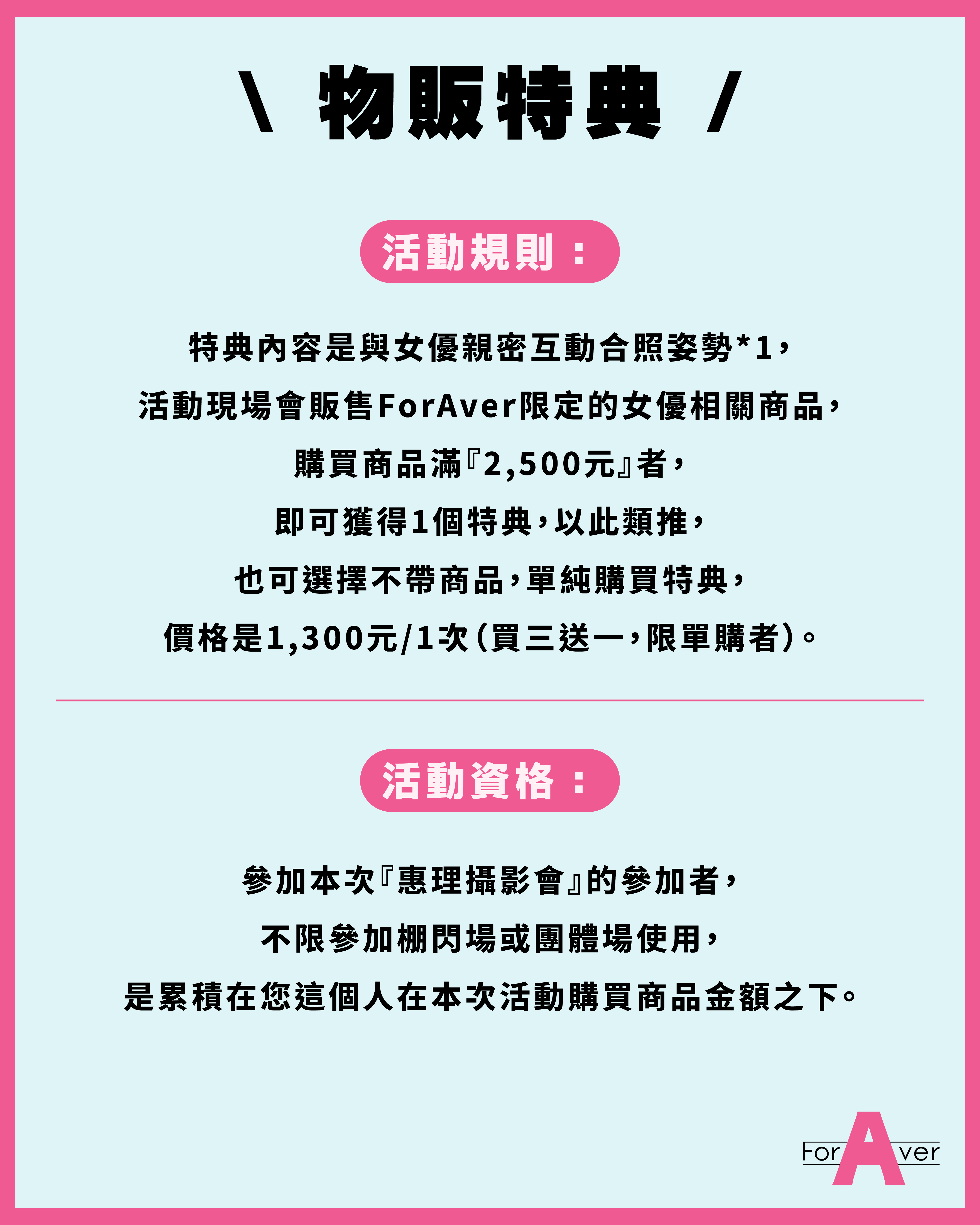 另外,如果没有报到全部也没关系,为了回馈大家,这次めぐり(惠理)的摄影会只要2500元就可以享有一次特典,单购特典也降价到1300元一次,买三送一,希望大家可以好好享受姊姊的魅力〜